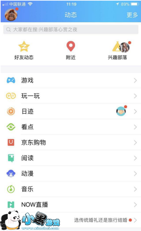 1、进入手机QQ,选择右下方“动态”按钮,在动态列表中第二行可进入“玩一玩”。