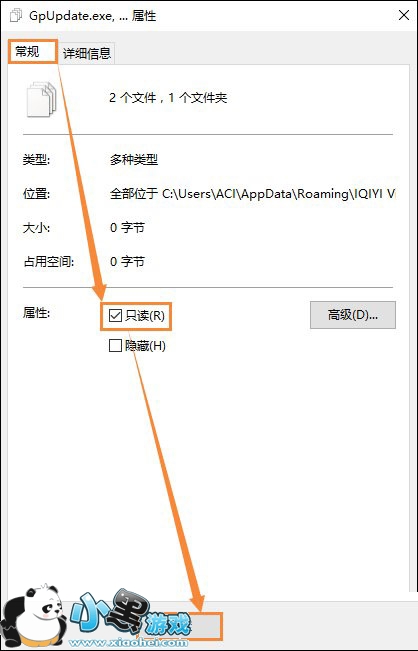 4、打开属性窗口后,勾选上“只读”,点击确定即可,这样爱奇艺播放器就不能更新了。