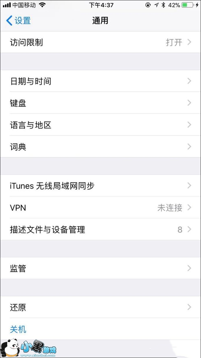 3、接着点击“描述文件与设备管理”,如下图所示。