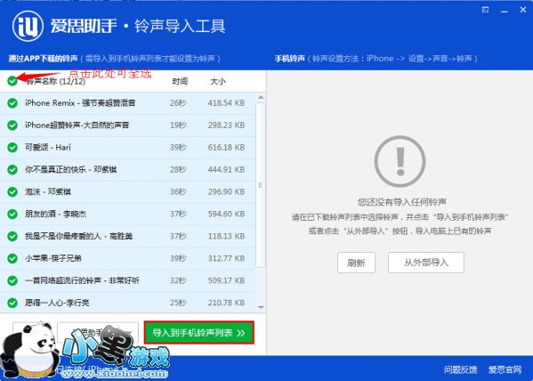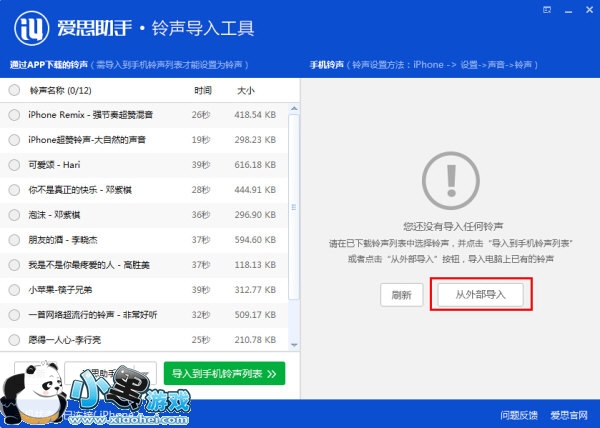 3、如果是要导入自己电脑上下载的iPhone铃声, 点击右边的“从外部导入”