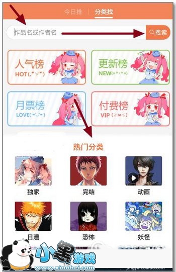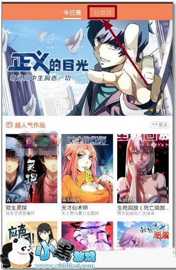进入腾讯漫画软件主界面,除了今日推荐的漫画,据个人口味点击分类找并搜索。