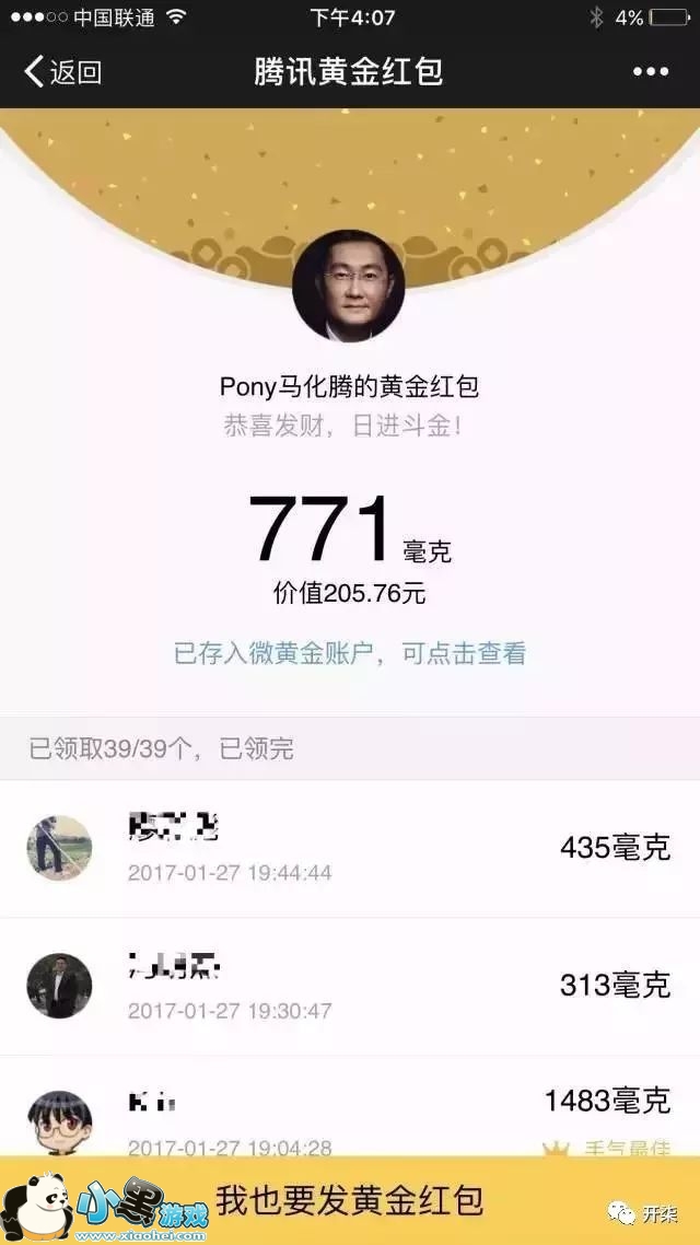 当时,黄金红包是腾讯财付通联合中国工商银行推出的,与现金红包不同,黄金红包以毫克计算,因为金价是根据行情波动的,所以,你持有的黄金价值也是波动的,你抢来的红包可能一夜醒来就增值了。同时,在很多场合,送钱太俗,送黄金则可以更有创意也有增值的可能性,因此,这也是被马化腾认为的有趣的新玩法。