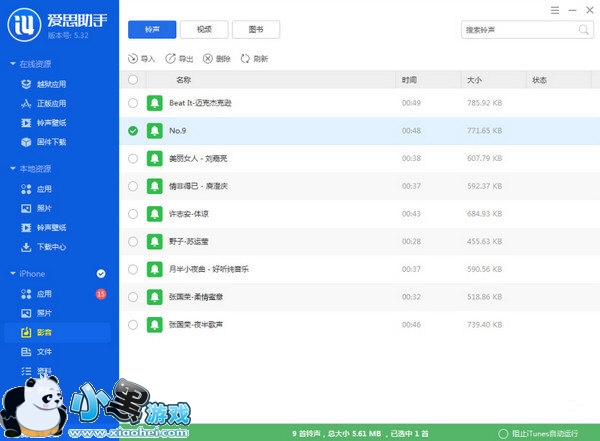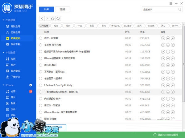 7、爱思助手“在线资源-铃声壁纸”里面海量热门铃声随意下载!
