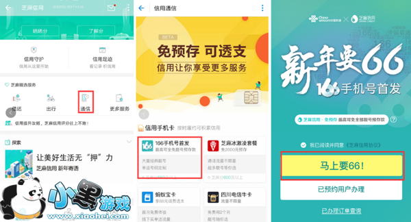 中国联通通过支付宝客户端首发166全新号段 (即手机号码前三位为166),用户根据芝麻信用的评估结果,可享靓号预存款减免权益的活动。