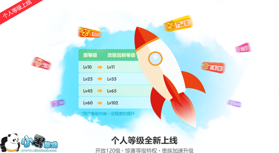 2、个人等级全新上线,最高等级120,贵族特权加速升级。