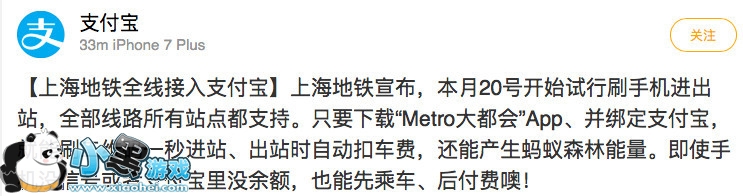 官方微博表示,从12月27日下午5点起,用支付宝就可以直接扫码过闸乘地铁啦。在支付宝里领取杭州地铁乘车码后,就能在杭州72个地铁站直接扫码进站,不用购买实体票。