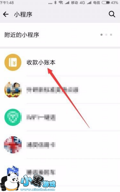 2、在打开的小程序列表中点击“收款小帐本”菜单项(如果没有,可用上面的搜索按钮来进行搜索)。