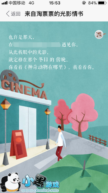 之后在新的页面会显示用户使用淘票票这款软件的时间以及淘票票跟用户说的一些话,还是蛮感人的。