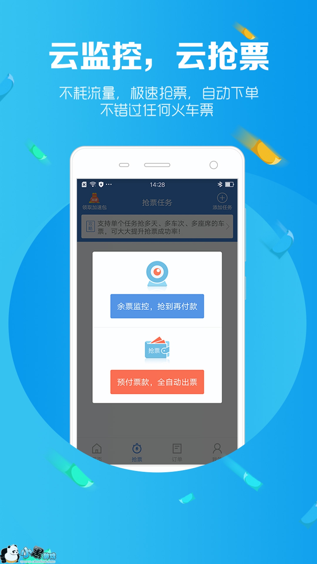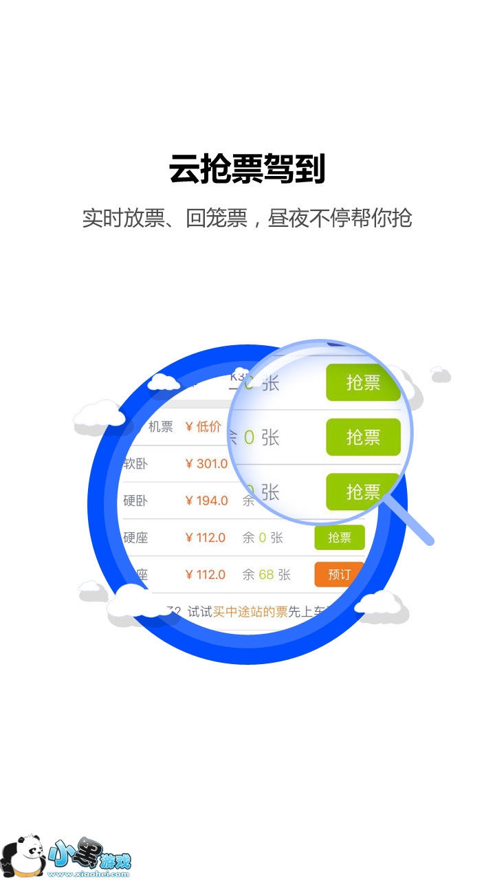 【自动抢票】使用双引擎抢票,监控到票还能自动提交订单;【余票监控】自动监控余票,一旦有票就会马上通知您; 【智能查询】分析附近站点的余票,大大提高买到票的几率; 【在线支付】实现在线支付功能,可以完全不依赖电脑购票。