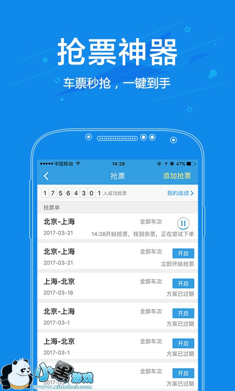 网易火车票,火车票抢票神器!【官方数据】火车票数据来源12306官方网站,数据同步快速、及时、准确;【秒抢余票】实时刷票,余票不错过;【快速约抢】预约下单,定点抢票,抢票不错过。