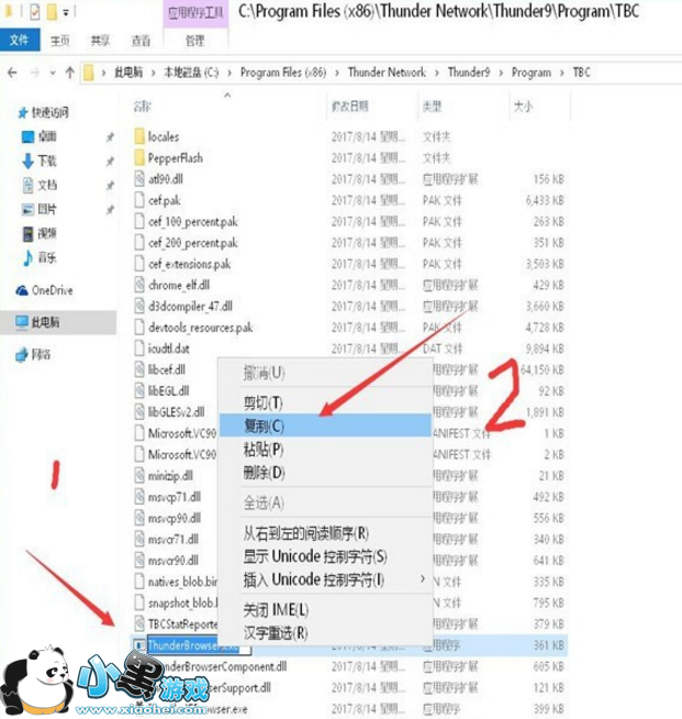 3、打开 TBC文件夹,然后找到ThunderBrowser.exe文件,复制文件名。