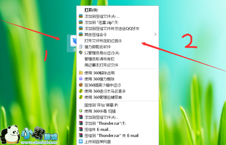 1、在桌面上右键单击迅雷图标,选择“打开文件所在的位置”,