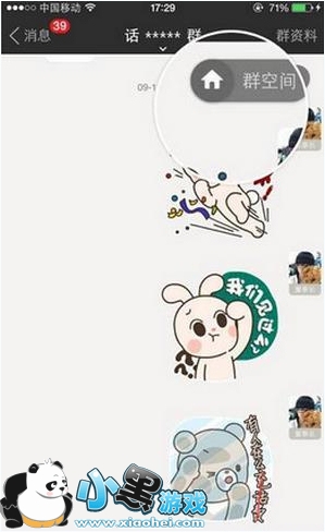 1、在群组聊天界面点击右上角“群空间”按钮进入,如下图: