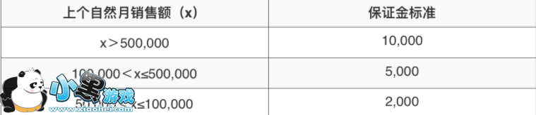平台有权每月根据店铺上个自然月的销售情况,按照下表二所列标准对其店铺保证金进行调整。若店铺账户内的店铺保证金余额高于其上个自然月销售额所对应的店铺保证金标准的,则店铺保证金不予调整。