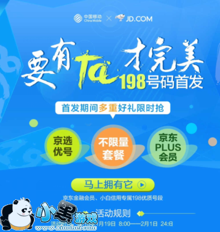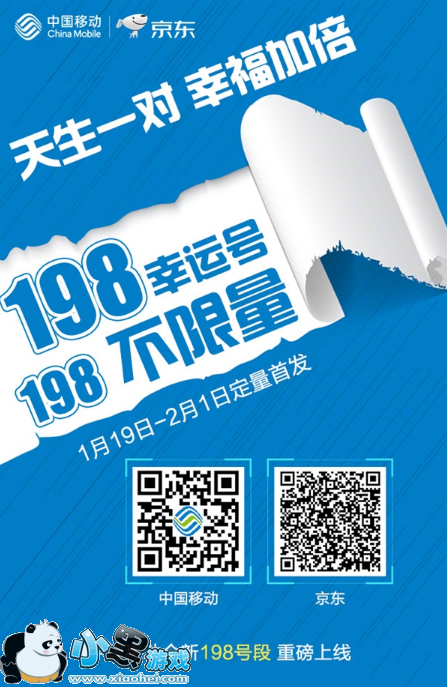 今天,中国移动198号段今日上线,1月19日-2月1日中国移动&京东联合首发。