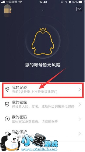 1、打开QQ安全中心页面,单击我的足迹