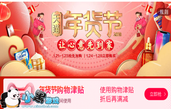 1.“年货节购物津贴”是为天猫消费者开发的天猫平台通用型折扣产品,消费者可以通过购物津贴享受优惠。