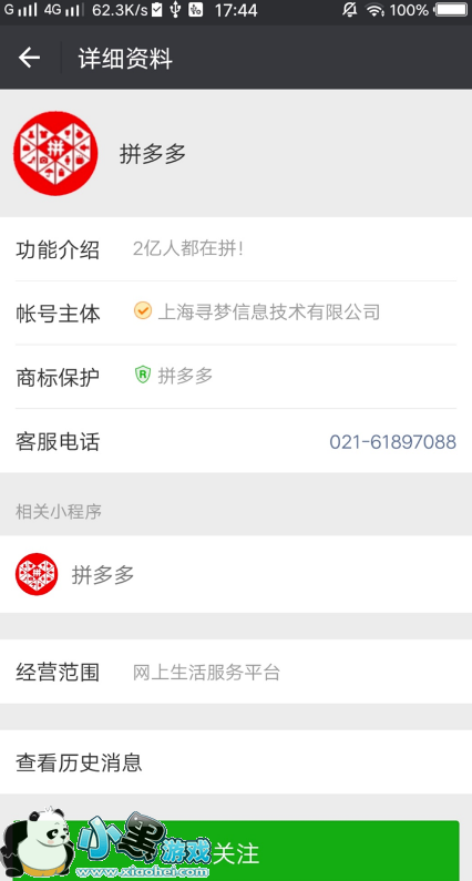 2、搜索“拼多多”并关注,