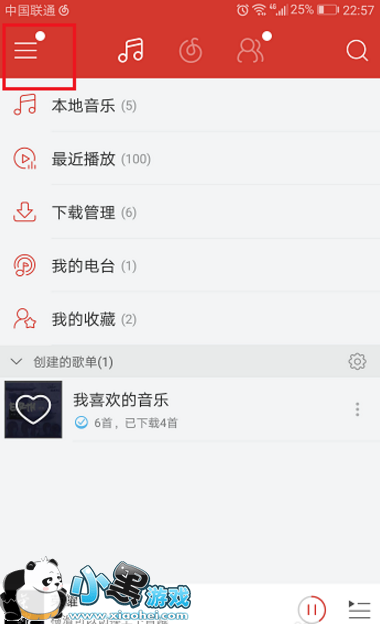 1、打开手机网易云音乐,进去主界面,点击左上方的菜单图标,如下图所示: