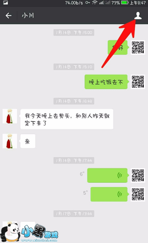 1、打开手机微信,找到一个想要设置聊天背景的人,进入聊天窗口,点击右上角的“人头像”。
