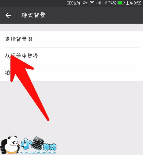 7、在聊天栏目中,点击“聊天背景”,这里有几种选择,可以现场拍照,可以从相册选择照片,我们从相册中挑选。