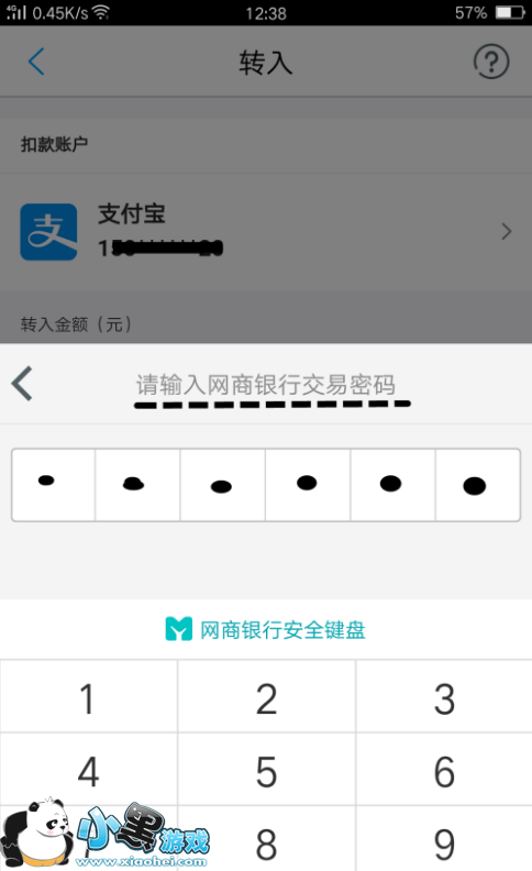 5、点击确定后,再输入网上银行转账交易密码即可,将余额的钱转入网商银行账户,如图所示,