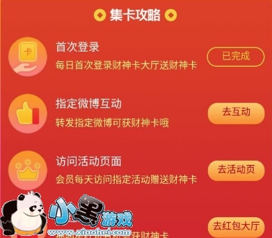 1.每日首次登陆财神卡大厅即可获得1张财神卡;