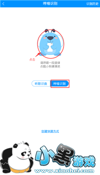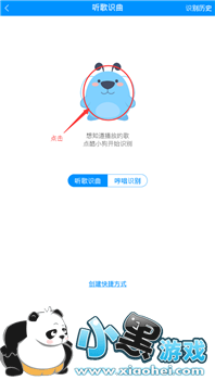 打开“听歌识曲”功能后点击酷小狗,酷小狗就会进入听歌识曲模式