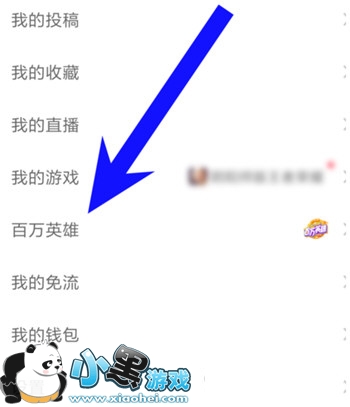 3.在个人主页的下拉列表中,我们找到百万英雄,点击进入。