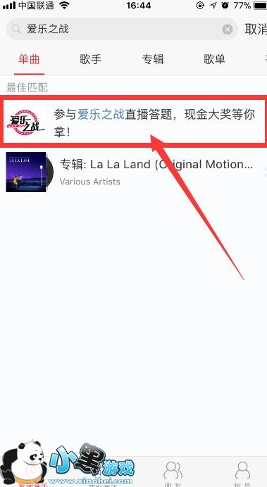 二、打开最新版的网易云音乐,在搜索栏搜索爱乐之战,单击参与爱乐之战直播答题。