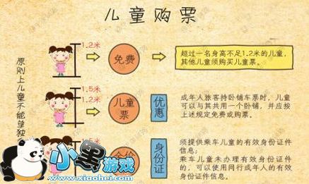 2.测量儿童身高时,以儿童实际身高(脱鞋)为准。若儿童身高为1.2m以内,则免票。若儿童身高为1.2-1.5m的,须购买儿童票;超过1.5m的,须购买全价座票。