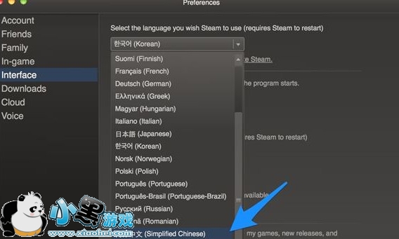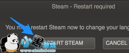 接着软件提示我们需要重新启动 Steam 才可以对设置的新语言第生效,点击 Restart Steam 按钮就可以了。