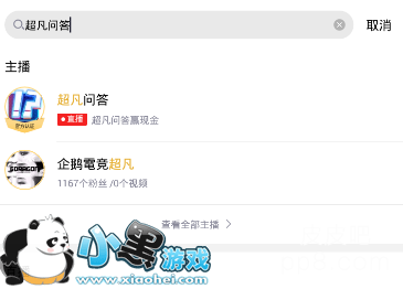 1、大家在本站下载企鹅点击最新版本,进入软件后在搜索栏搜索“超凡问答”,看到直播,点击;