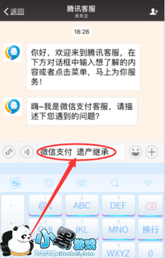 5、在客服的联系对话框内输入“微信支付 遗产继承”,然后回车;