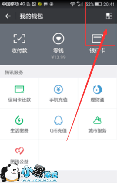 2、进入我的钱包界面,点击右上角的四方块符号;