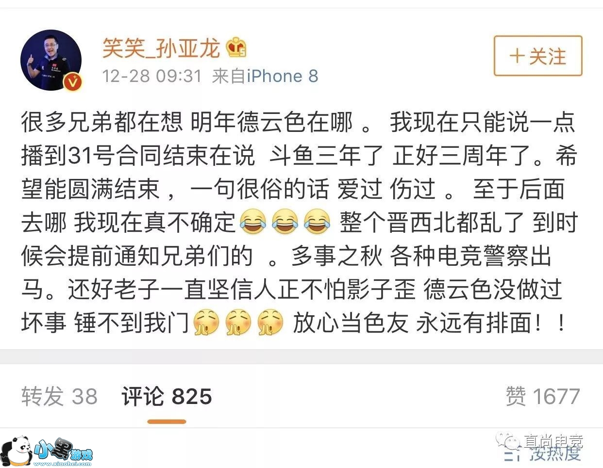 看来笑笑自己吃了多少口嗨的亏没记住,不过我们也可以肯定,不参加斗鱼年度盛典,还和虎牙高管口嗨蛇哥,又说要去某个平台当山大王的德云色,这下是铁了心要离开斗鱼了。