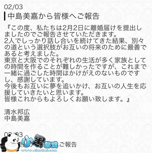 最近,新闻上好几对宣布分手离婚的,不仅是国内的,国外的也有离婚的消息,而日本歌坛天后中岛美嘉最近在ine上宣布了自己与丈夫清水邦广离婚的消息,而离婚的原因竟然是相聚的时间太少,感情淡漠了,经友好协商,决定离婚。