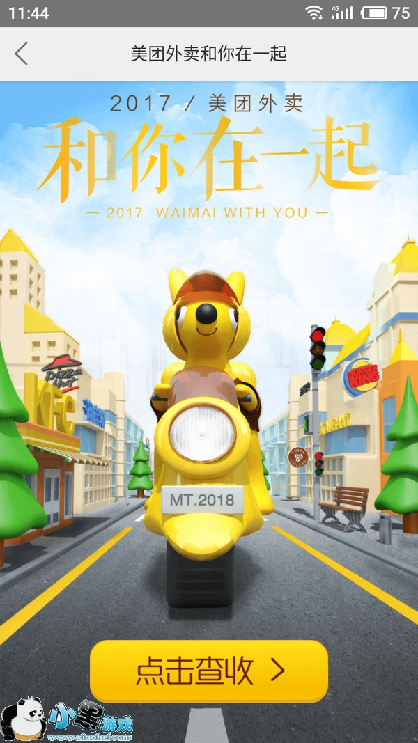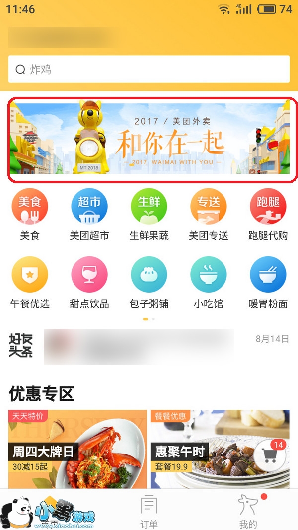 美团外卖年度账单查看方法:点击首页第一个滚动栏《2017/美团外卖 和你在一起》