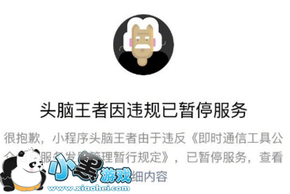 1月30日晚间,微信小程序头脑王者发布公告称,因违反《即时通信工具公众信息服务发展管理暂行规定》目前已暂停服务,至于何时再上线,官方并未给出明确恢复服务的时间。