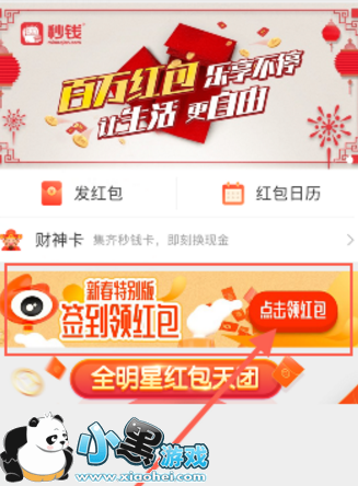 2.接下来在新春特别版签到领红包处【点击领红包】;