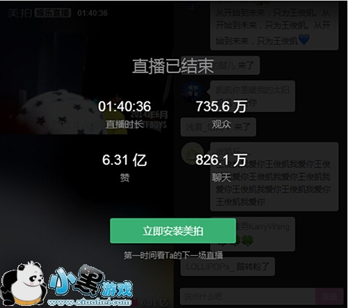 同时,在直播尾声,王俊凯还与粉丝预告了TFBOYS另两位成员易烊千玺、王源不久之后也将在美拍上献出个人直播处女秀。王俊凯个人首次美拍直播取得如此好的成绩,这让小编相当期待易烊千玺、王源届时的个人美拍直播首秀表现。