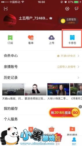 1、打开打开优酷app点击“我的”,看到“卡券包”;