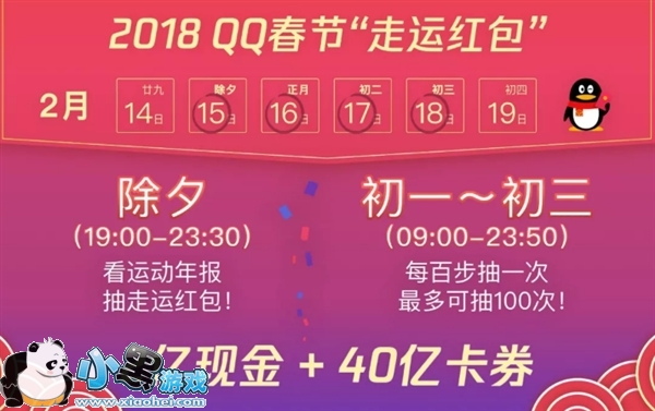 第一是在除夕(2月15日)当天晚上19:00整,QQ界面会出现一个挂件,用户可以点击挂件查看去年的运动步数总结,同时也可以抢红包,一直持续到23:00结束。
