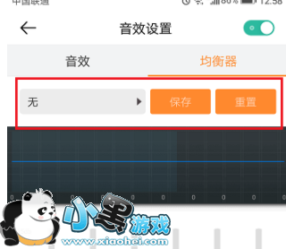 4、在音效设置里面切换到均衡器界面,默认设置为无
