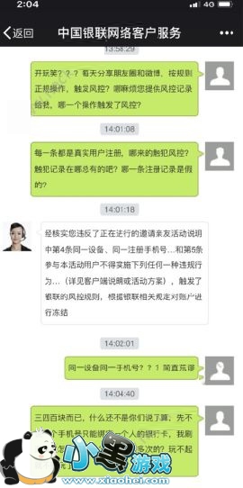 有用户咨询银联云闪付客服后官方表示,部分用户是由于触发银联风控规则,最主要的原因是在邀请好友时采用了同一设备、同一注册手机号,根据银联规定账号被冻结。