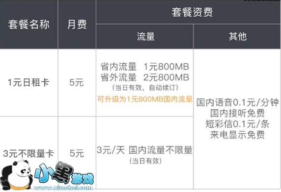 与此前的联通日租卡内容相同,1元日租卡省内1元800MB,在网半年或者充值200元余额即可升级1元800MB全国流量,通话、短彩信皆0.1元,赠送来电显示。超40GB流量断网。