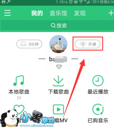 3.QQ音乐我的界面,我们点击“开通”,如图所示。