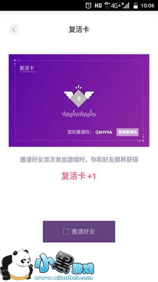 3.输入邀请码:邀请码:Q6HV9A,即可获取复活卡。