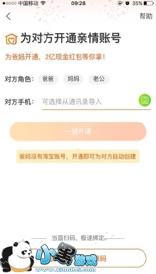 3、选择对方角色,输入手机号码即可一键开通哟,如果在爸妈身边的朋友,可以直接让对方扫一扫你的二维码也可以迅速开通,非常方便啦~