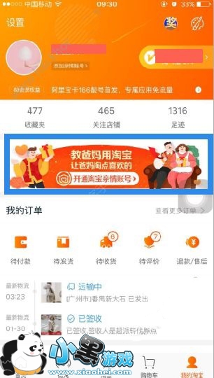 1、大家记得将淘宝更新到最新版本哟,这个时候,点击“我的淘宝”,可以见到“开通淘宝亲情账号”,点击进入;